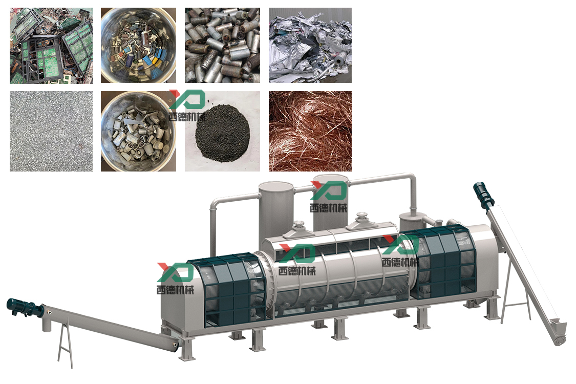 电子垃圾送入连续式炭化炉中,将表层的塑料炭化,提炼出铜或者铝等金属物资,这种金属市场上几万一吨,为客户增加不少的效益保障!