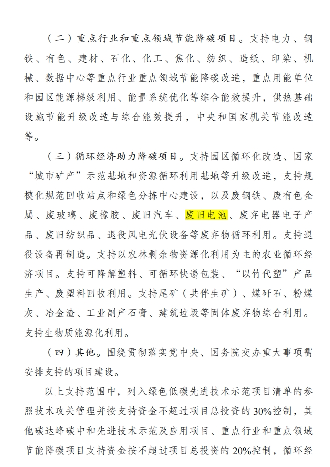 《节能降碳中央预算内投资专项管理办法》为废旧电池回收处理再利用提供了有力的政策支持,推动了循环经济的发展。废旧电池回收处理再利用不仅实现了资源的循环利用和环境的保护,还促进了产业升级和技术创新。